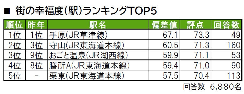 ■街の幸福度(駅)トップは、2年連続で手原(JR草津線)