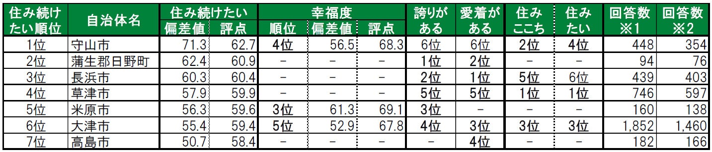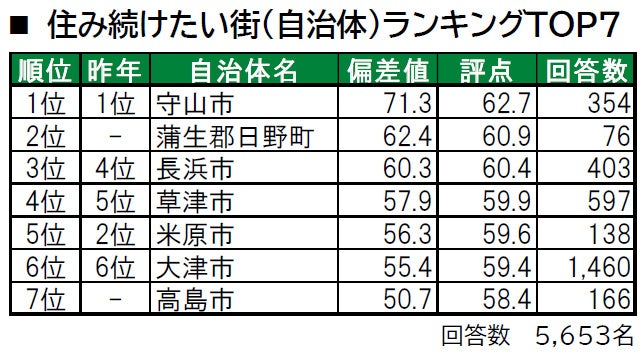 ■住み続けたい街(自治体)トップは、2年連続で守山市