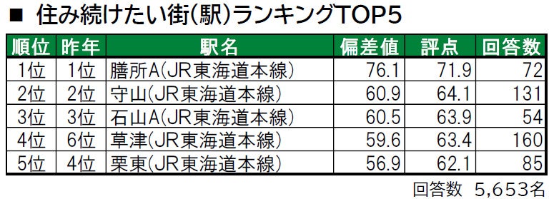 ■住み続けたい街(駅)トップは、2年連続で膳所A(JR東海道本線)