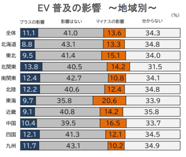 EV事業参入は全産業の1割 本格化への課題多く EV普及で「プラスの影響」が大きいのは『北関東』、「マイナスの影響」は『東海』
