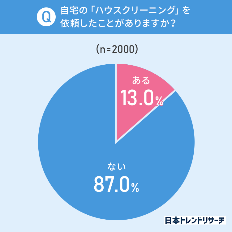 13%の方が、自宅のハウスクリーニングを依頼したことが「ある」と回答しました。
