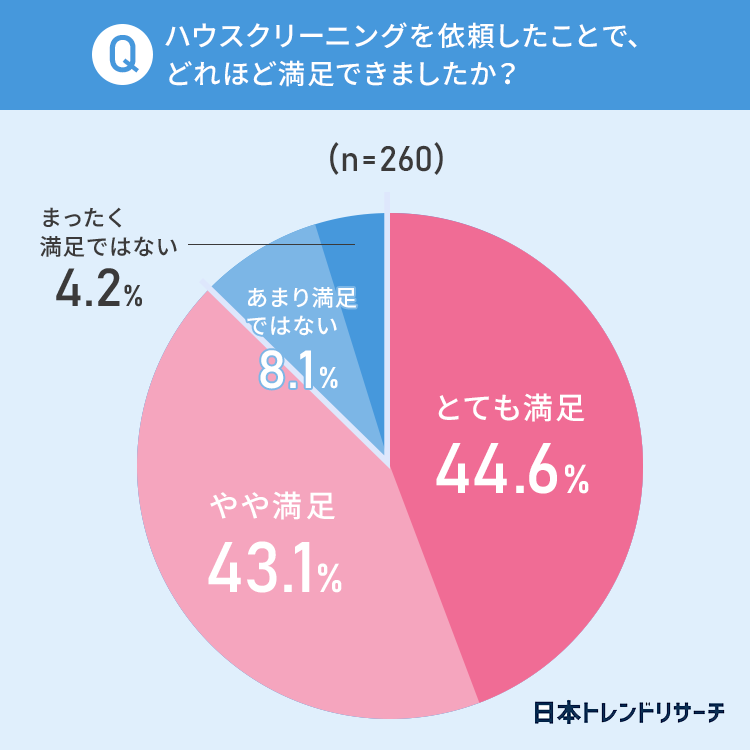 最後に、ハウスクリーニングを依頼したことでどれほど満足できたかについて聞きました。