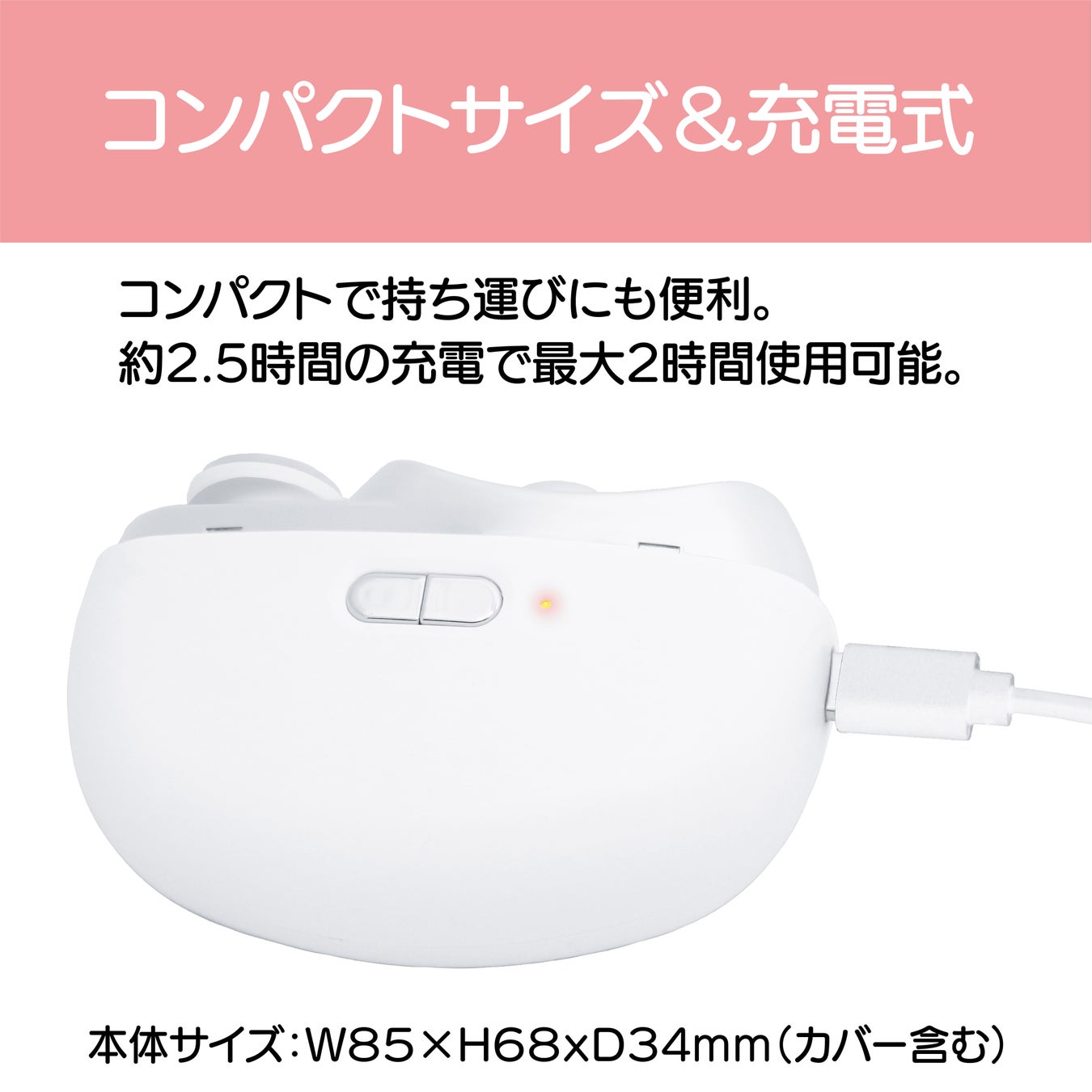 約2.5時間の充電で最大2時間使用可能(※使用状況により異なります)。
