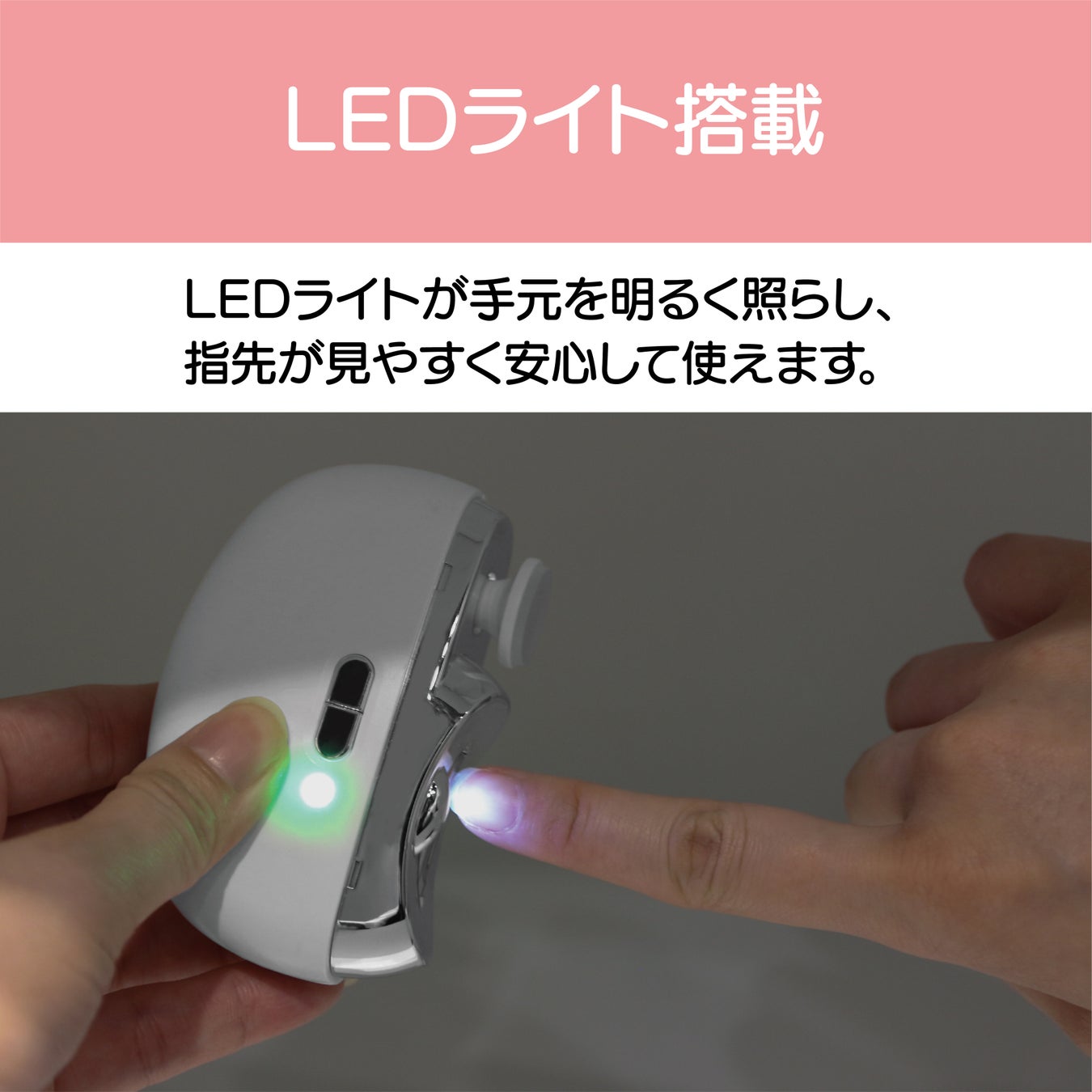 LEDライトが手元を明るく照らし、指先が見やすく安心して使えます。
