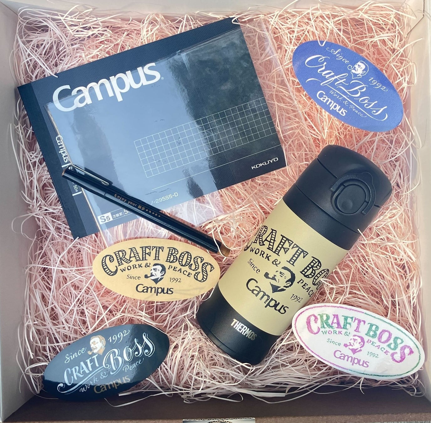 ■賞品および当選数:抽選で20名様に「外で一息つけるセット」をプレゼントします。大人キャンパスのノートカバーや「クラフトボスx大人キャンパス」のコラボのオリジナルペン、オリジナルサーモスを詰め合わせた外出先でホっと一息つけるセットとなります。