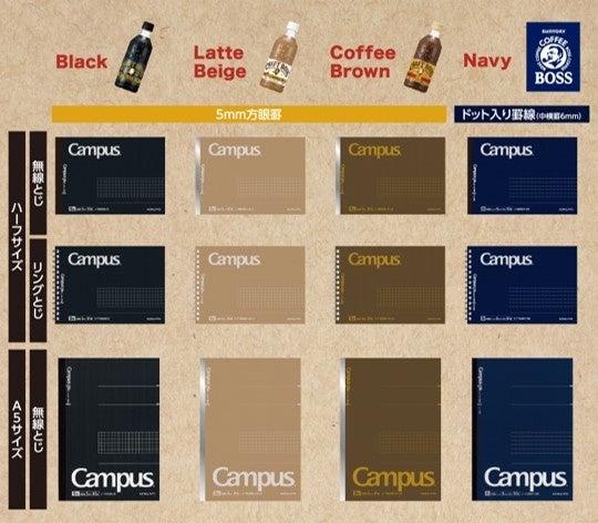 人気のコーヒー「クラフトボス」の味覚をイメージした表紙カラーの「大人キャンパス」を発売