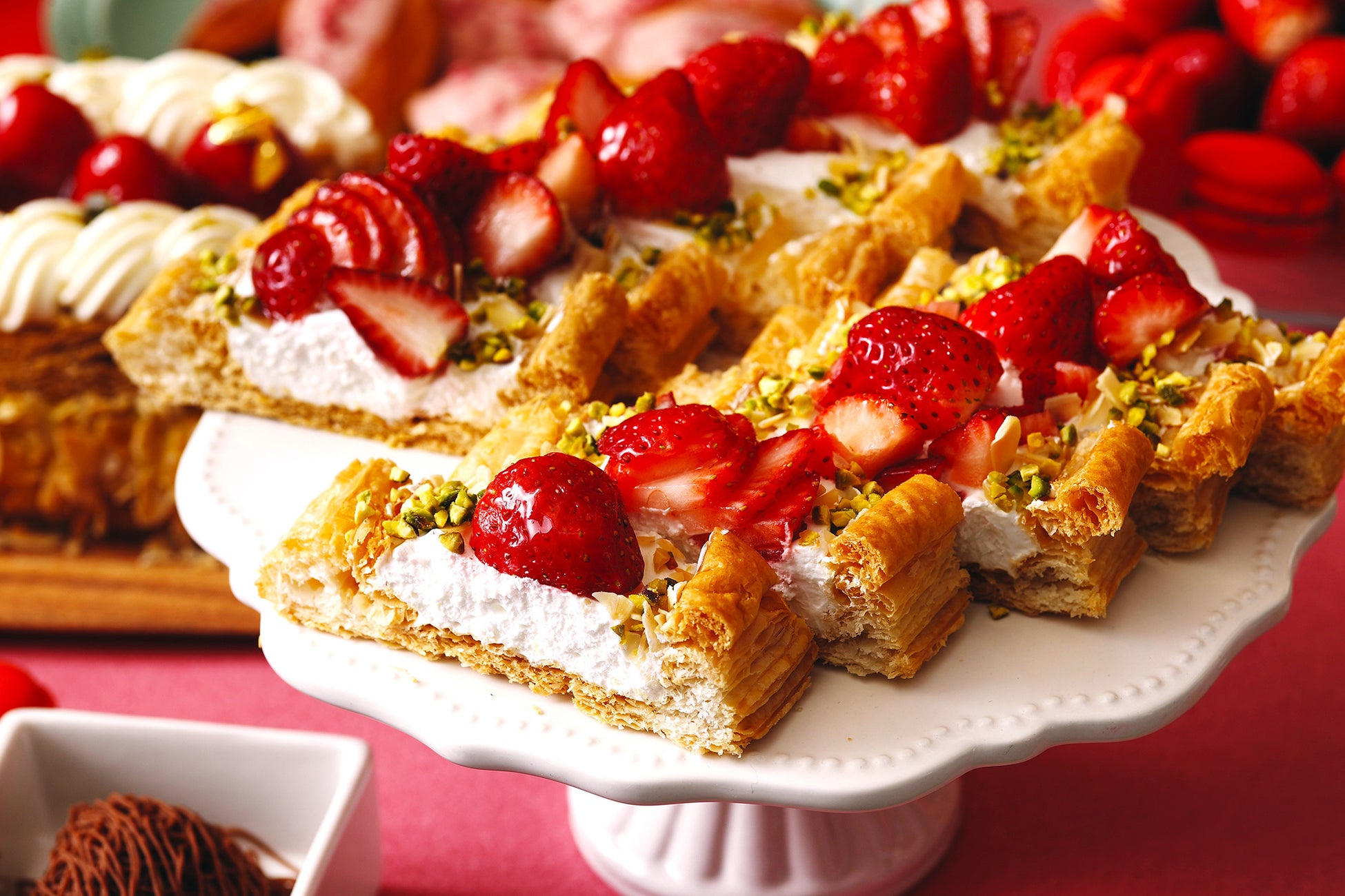 「ストロベリーフェア2024-2025」の第二弾は、バレンタインとホワイトデーに向けていちごを主役に、ミルク、ホワイト、ルビーの3種のチョコレートを掛け合わせたスイーツをお届け。さらに、旬のフレッシュいちごもお楽しみいただけるほか、平日のタイムサービスとして、スペシャルなナポレオンパイを提供いたします。