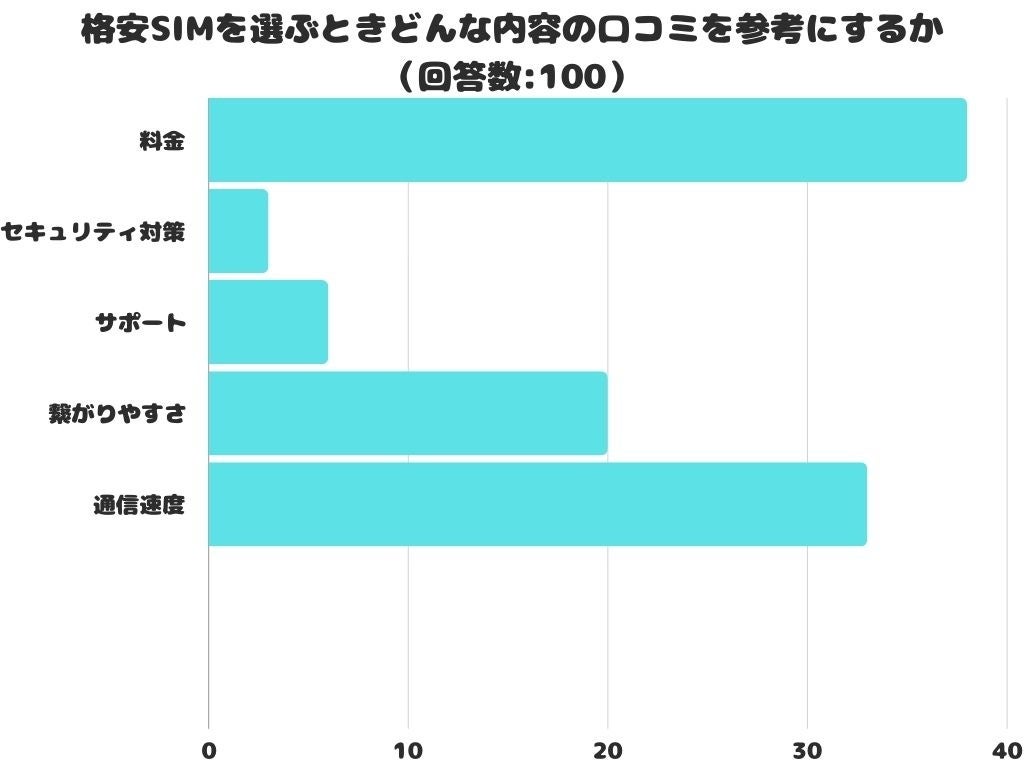 格安SIMのどんな内容の口コミを参考にするかをアンケートにて調査したところ、1位は「料金」でした。
