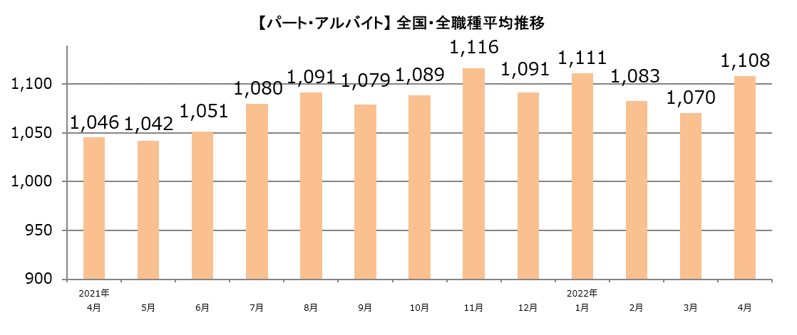 ビースタイルグループで主婦に特化した求人サイト『しゅふJOB』を運営する株式会社ビースタイル メディア(本社:東京都新宿区、代表取締役社長:小牟田斉美)は、掲載された求人情報の時給データから算出した『平均時給』の2022年4月分を集計しました。