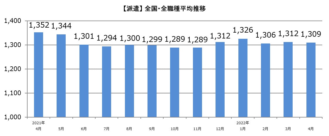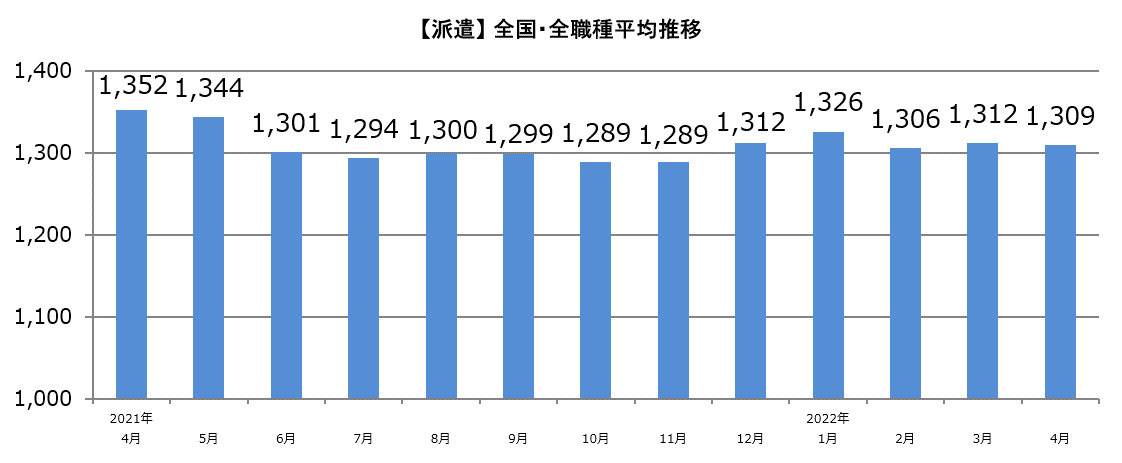 【2022年4月 主婦求人の平均時給】パート・アルバイト:『1,108円』、派遣:『1,309円』