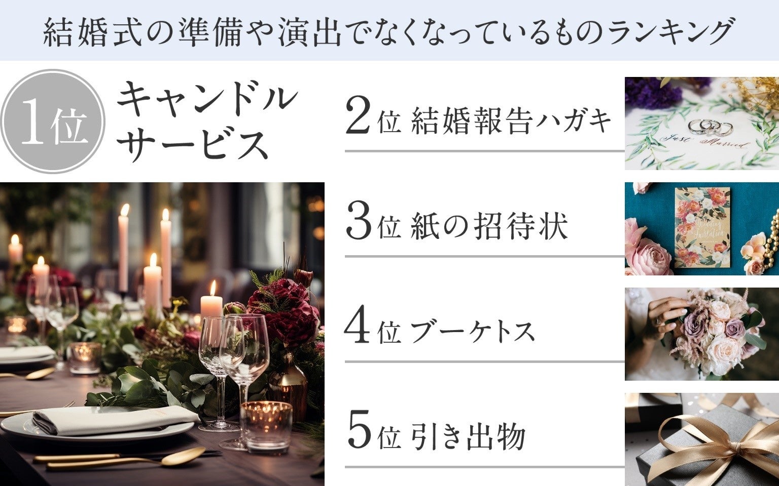 そのなかでキャンドルサービスが1位となり、結婚報告ハガキ、紙の招待状と続きました。