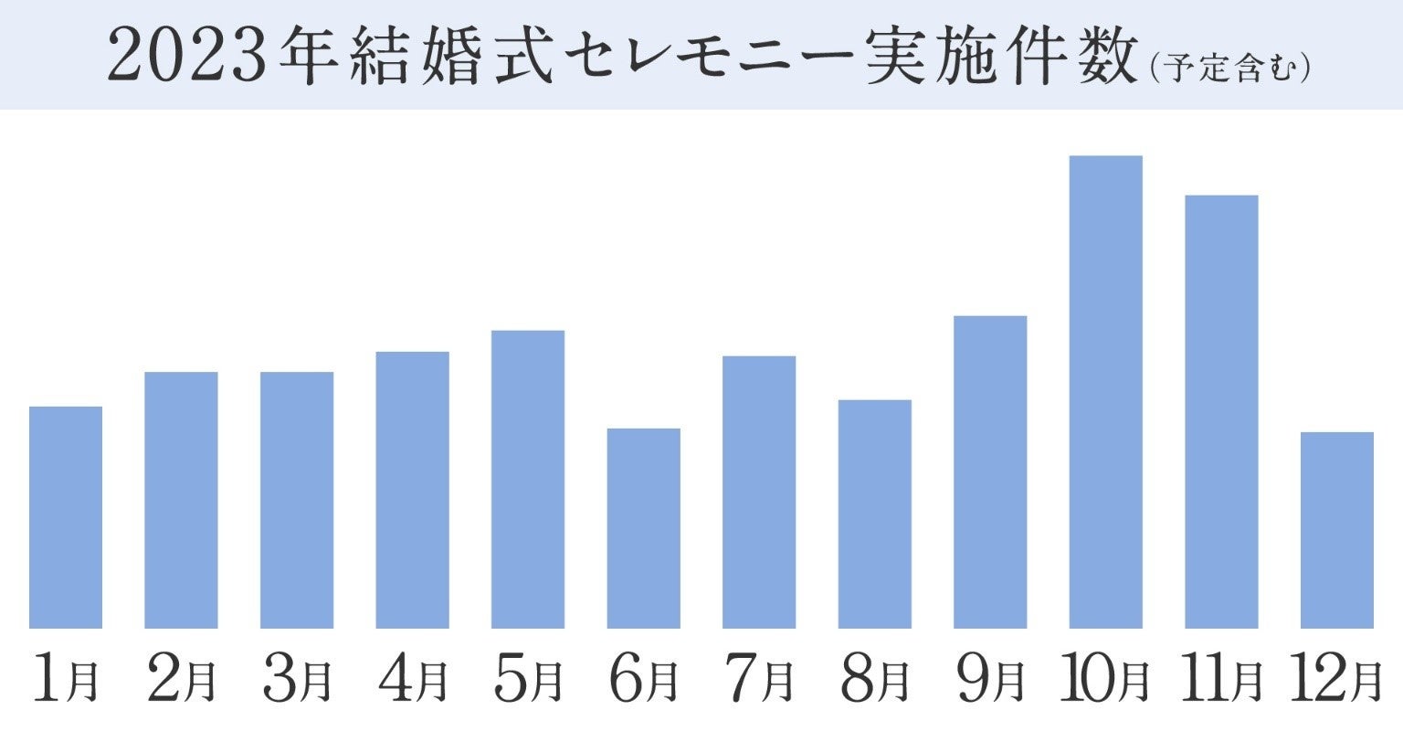 当社のスマ婚(カジュアルな挙式披露宴、少人数挙式等プロデュース)および2次会くん(結婚式二次会プロデュース)の施行時期は、2023年度において(予定含む)、10月、11月の順で多く、憧れの季節である6月は二番目に少ない結果となりました。