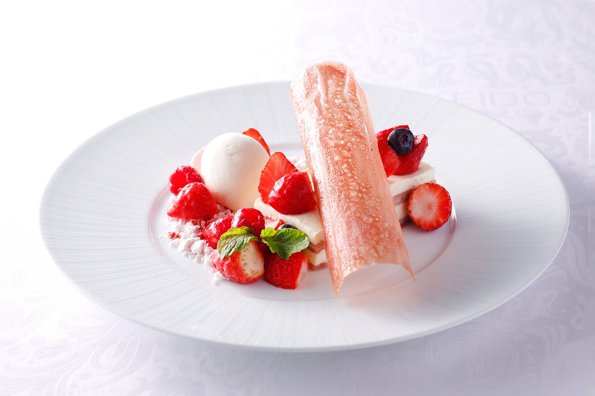 フレッシュなベリーや、爽やかなラズベリーのチーズクリーム、濃厚な味わいのピスタチオアイスクリームのマリアージュをご堪能ください。