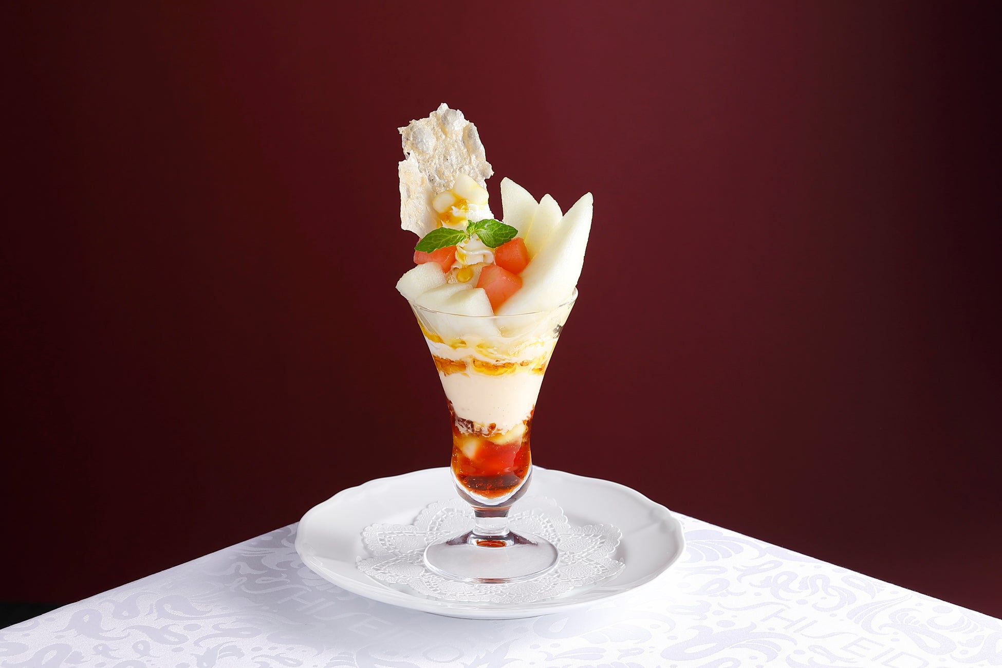 味だけでなく、白と赤のコントラストが可愛らしい盛り付けもお楽しみください。