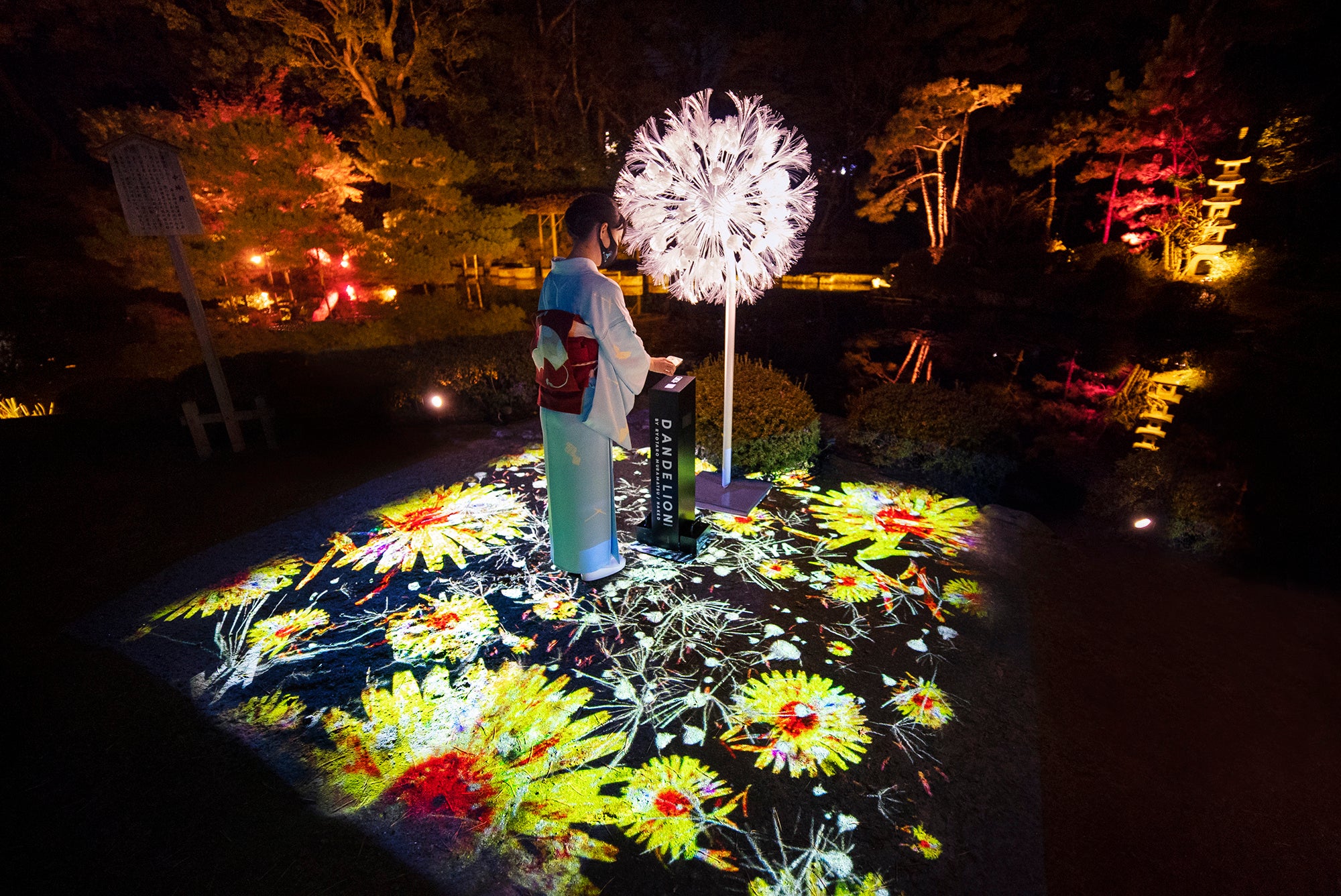 「左近の桜」「右近の橘」をモチーフにした提灯が映し出す光の輪で、ソーシャルディスタンスをキープしながら自分自身も光の演出に参加。