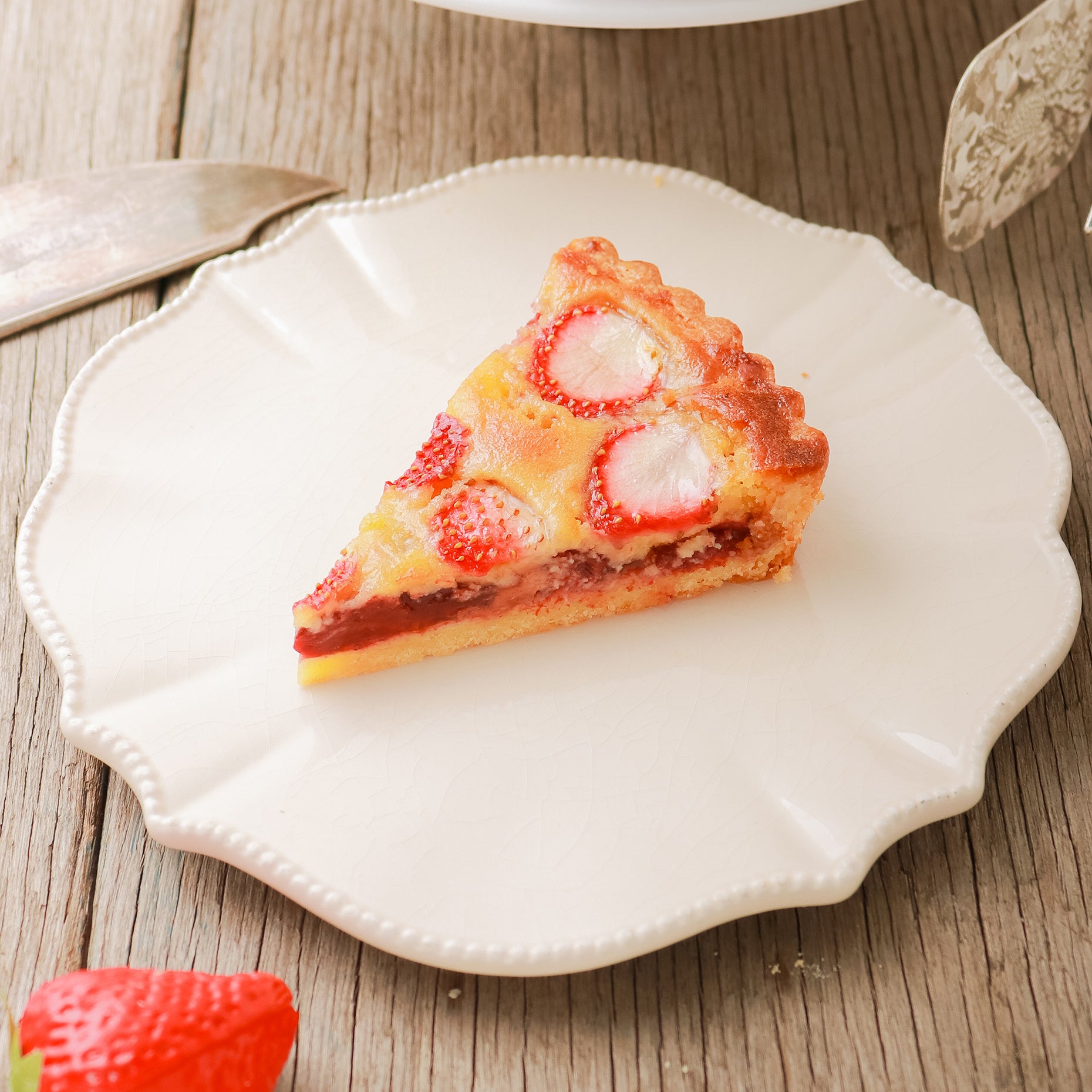 いちごジャムと風味豊かなアーモンドクリームを絞り、いちごをのせて焼き上げたタルト。