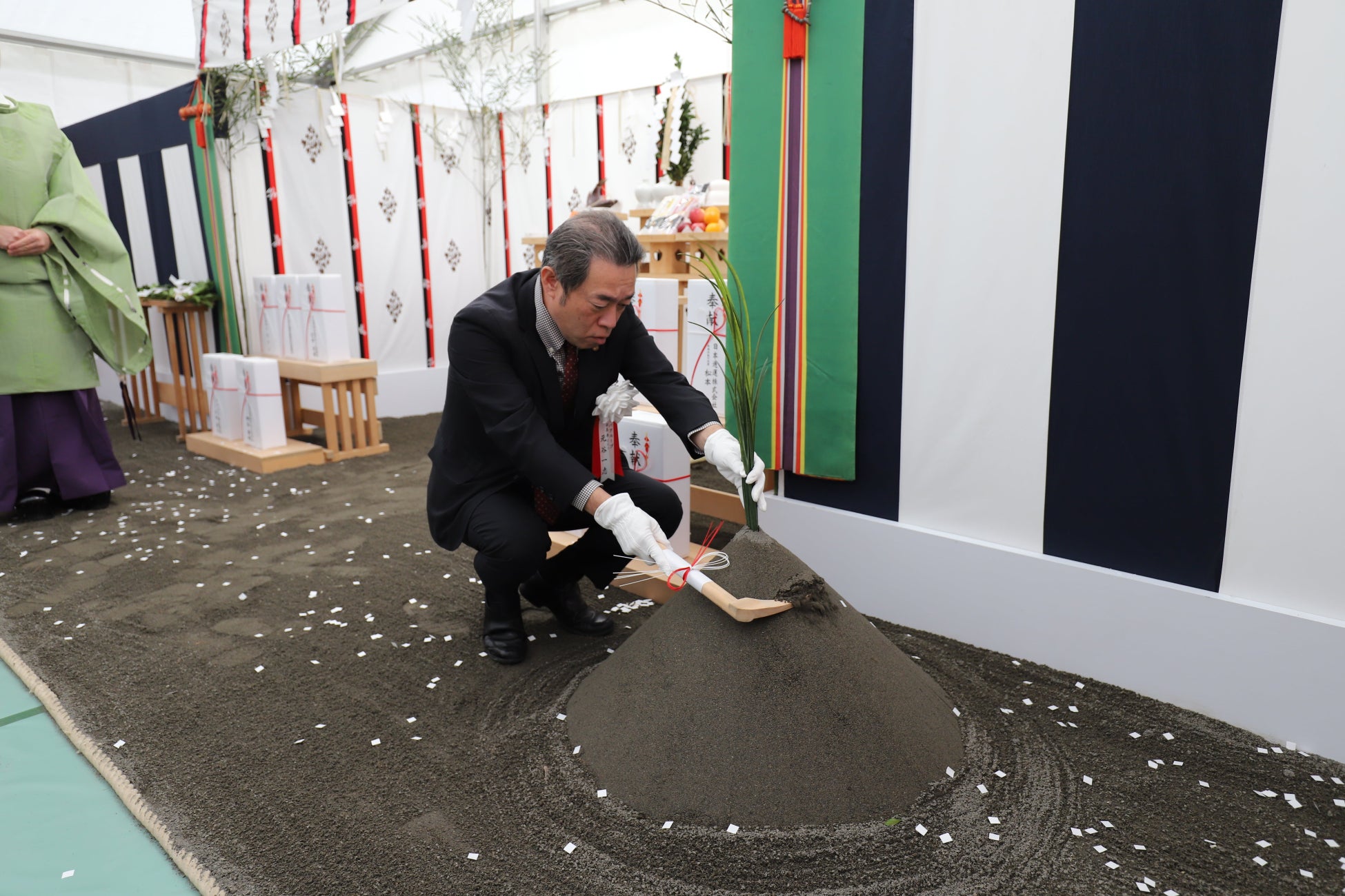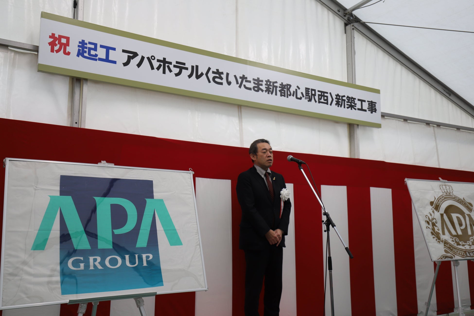 神事後の挨拶において、アパグループ社長 兼 最高経営責任者(CEO)の元谷 一志は、「今月はアパホテル&リゾート〈大阪なんば駅前タワー〉等の開業やアパホテル〈渋谷駅前〉起工式を開催し、本物件の起工式により6件目の式典を開くことができ嬉しく思う。来年は4200万人の訪日外国人が想定されており、それに対応できるよう、より一層のネットワーク拡大を図っていく。外資系ホテルの進出も多くなっているが、細かな点に配慮したホテル作りを心掛け、一歩先行くホテルで『日本ブランドここにあり』と示すことができるよう取り組んでいきたい。」と述べた。