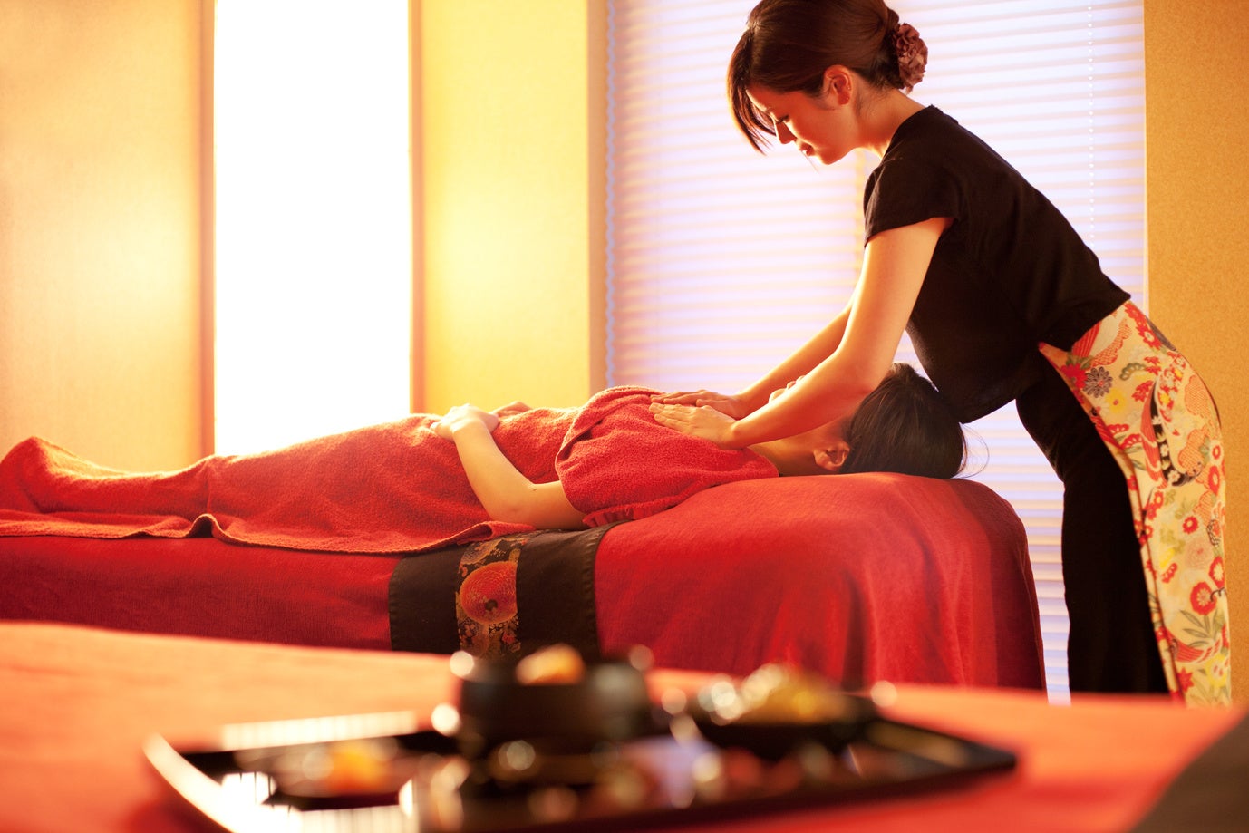 海洋療法タラソテラピーを中心に、石川県が生産量日本一を誇る金沢の伝統美・金箔銀箔に癒されるご当地エステで寛ぎのひとときを。陶板浴やタラソ温浴、浮遊感で深いリラクゼーションに誘うリドマシン、カップル施術専用ペアルームなど15ブース430㎡充実のスパ施設は、加賀五彩に九谷焼や加賀友禅をあしらった雅な空間です。