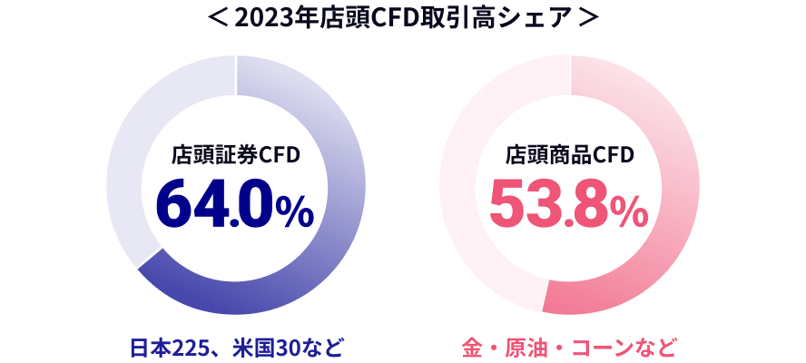 (※1)日本証券業協会及び日本商品先物取引協会の統計情報より当社調べ(2014年1月~2023年12月)。集計対象は、店頭証券CFDは個別株・株価指数・債券・その他有価証券、店頭商品CFDはエネルギー・貴金属・農産物です。