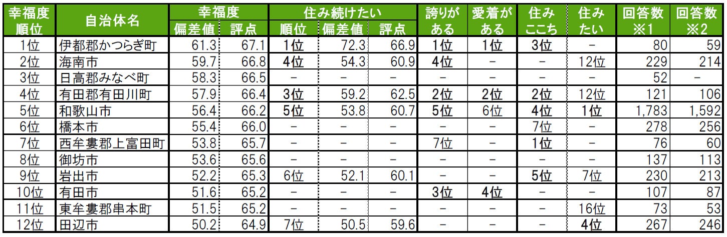 いい部屋ネット「街の幸福度 & 住み続けたい街ランキング2022<和歌山県版>」(街の住みここちランキング特別集計)発表