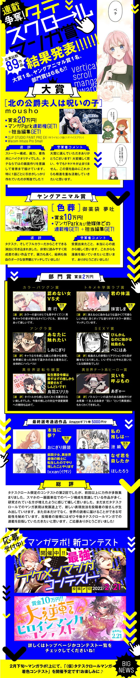 - 「連載争奪!タテスクロールマンガ賞 第2回」結果発表!