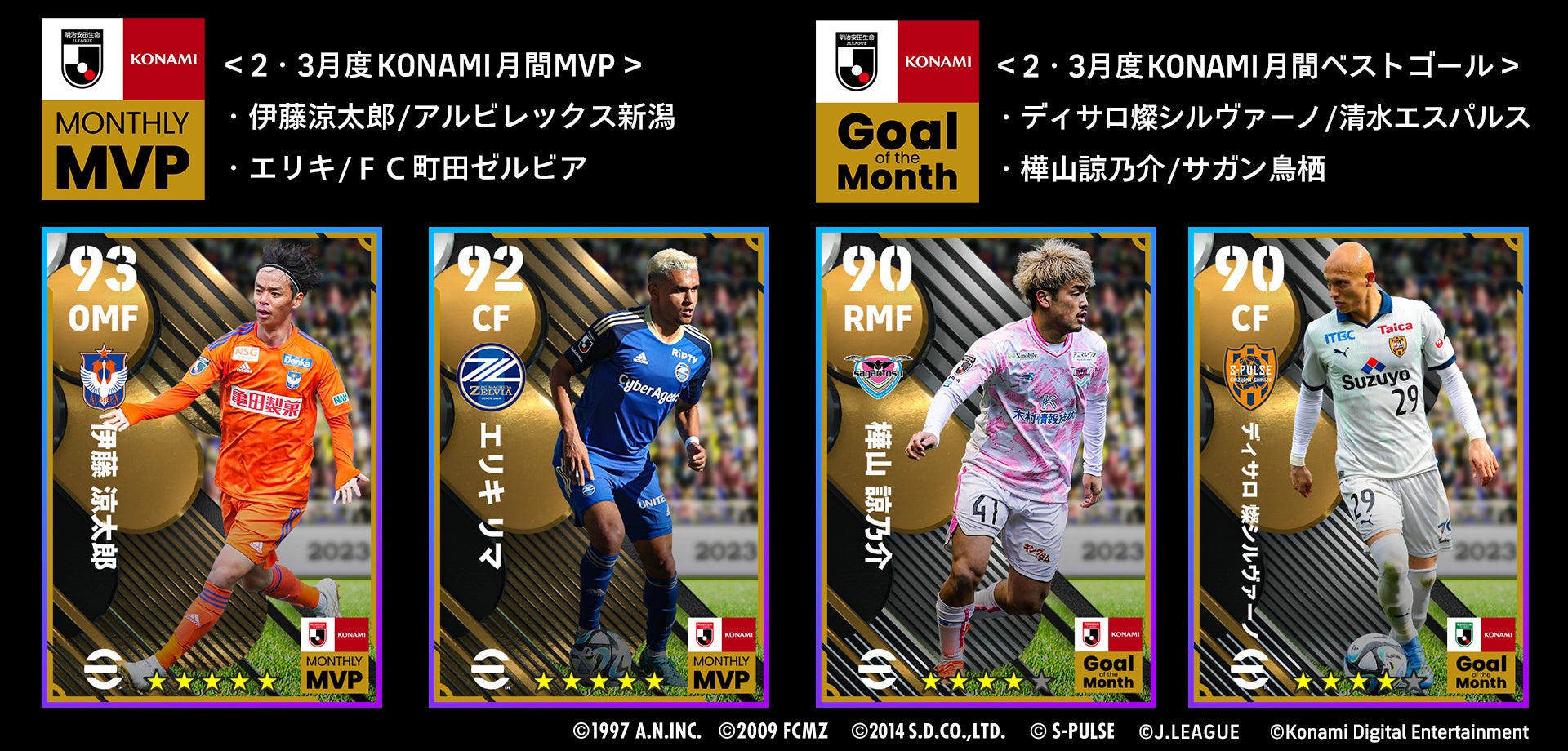 またLeague Selectionには「2・3月度KONAMI月間MVP」、「2・3月度KONAMI月間ベストゴール」を受賞した選手が登場します!