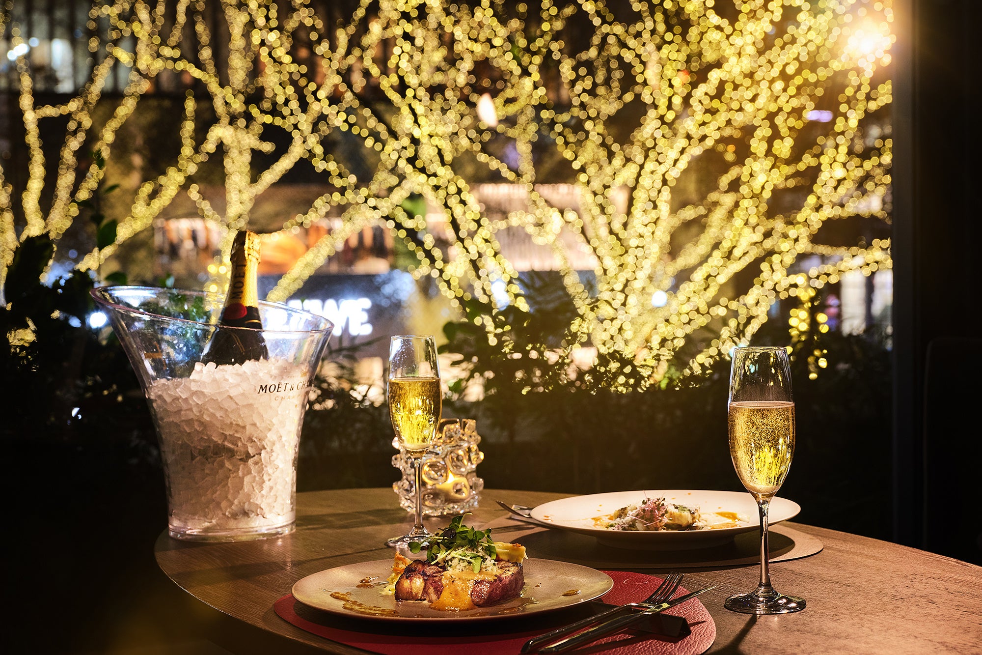 ザ ストリングス 表参道では、12月2日(月)の「表参道 フェンディ イルミネーション 2024」点灯に合わせた一夜限定のイベントをご用意いたしました。Cafe & Dining ZelkovAと、TAVERN by the greenの各店舗にて、この日販売をスタートするイルミネーションディナーコースをご予約いただいたお客様全員にシャンパン「モエ・エ・シャンドン」を1杯ずつプレゼントし、クリスマスムード高まるフェスティブシーズンをさらに盛り上げます。