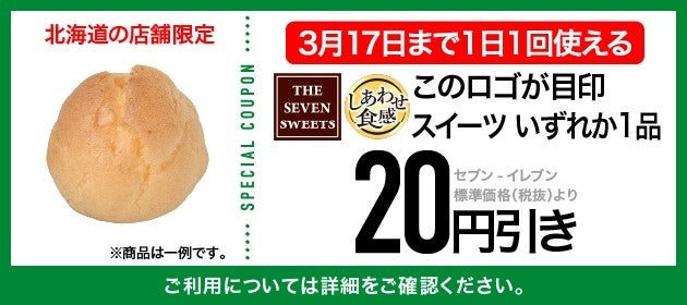 本キャンペーンでは、1日1回使えるおトクなクーポンをアプリに配信するほか、北海道の店舗でご購入されたお客様限定の「セブンマイル実質10倍付与キャンペーン」を展開しています。3月の4週目には、あらたに「ペストリー」が対象カテゴリーの20円引きクーポンを配布します。
