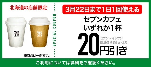 ※クーポン配信日の前日23:59までにセブン‐イレブンアプリの会員登録をされていて、アプリの登録情報「お住まいの都道府県」が「北海道」の方へクーポンを配信