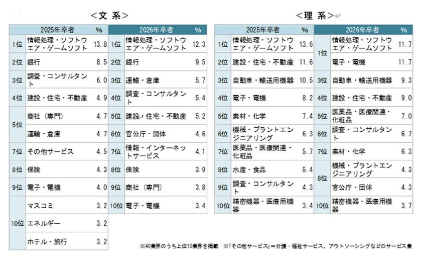 調査対象 : 2026年3月に卒業予定の大学4年生(理系は大学院修士課程2年生含む)