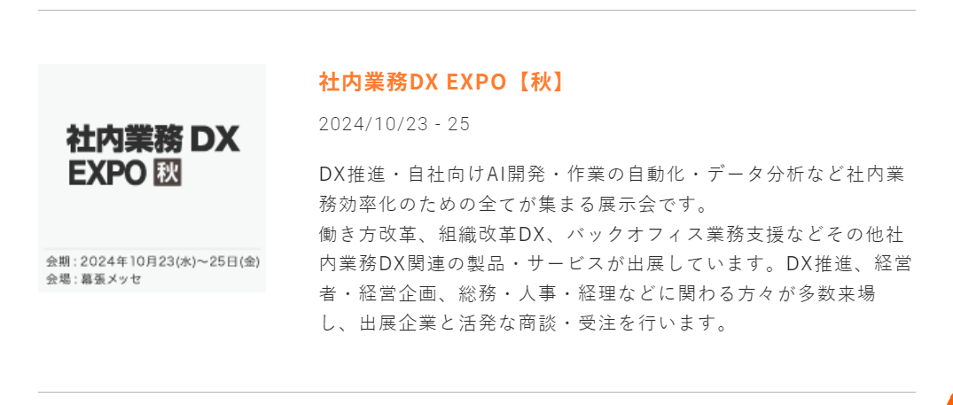 展示会名 :Japan DX Week 【秋】 2024: 「社内業務DX EXPO」