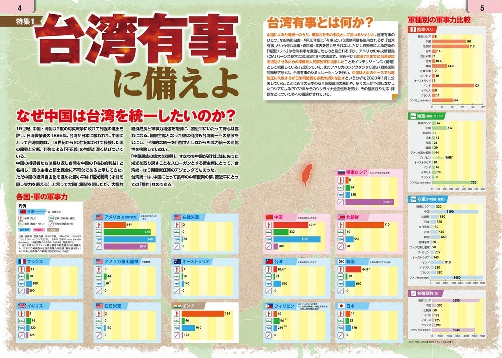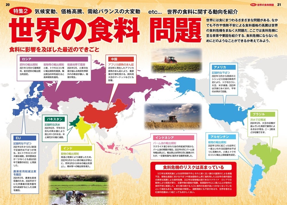 今回も巻頭特集を中心に最新の情報満載でお届けします。世界編では緊迫する東アジア情勢にフォーカスした「台湾有事に備えよ」、そして見逃すことのできない「世界の食料問題」を取り上げました。