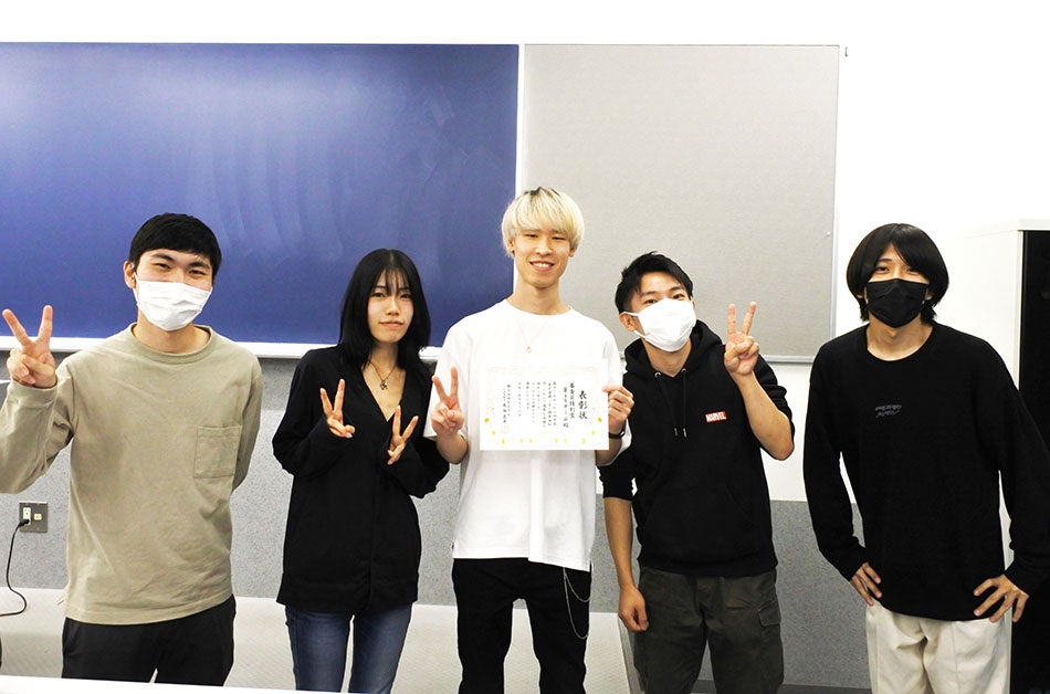 エビマヨ味のうまい棒の魅力を世界中の人たちに知ってもらうため、ポップなMVに中華風のユニークな楽曲を制作しました。この度の受賞に、喜びと驚きを感じています。メンバーひとり1人が個性的なアイデアを出し合ったおかげで楽しく、面白い作品を制作することができました。誰一人欠けても完成しなかったと思います。チームメンバー、そしてご指導いただいた先生方に、心から感謝申し上げます。