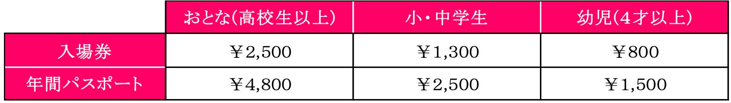 【料金】おとな(高校生以上)¥3,500/小・中学生 ¥2,300/幼児(4才以上) ¥1,800