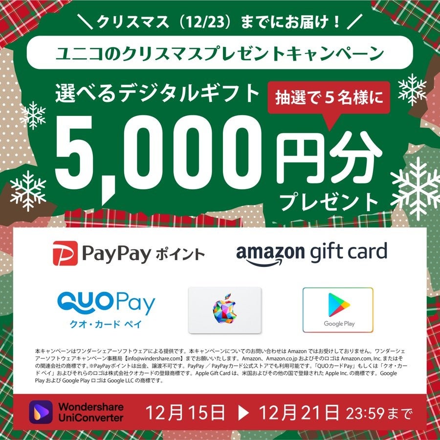 『クリスマスまでにお届け!』デジタルギフトが当たるキャンペーン実施中★|Wondershare UniConverter