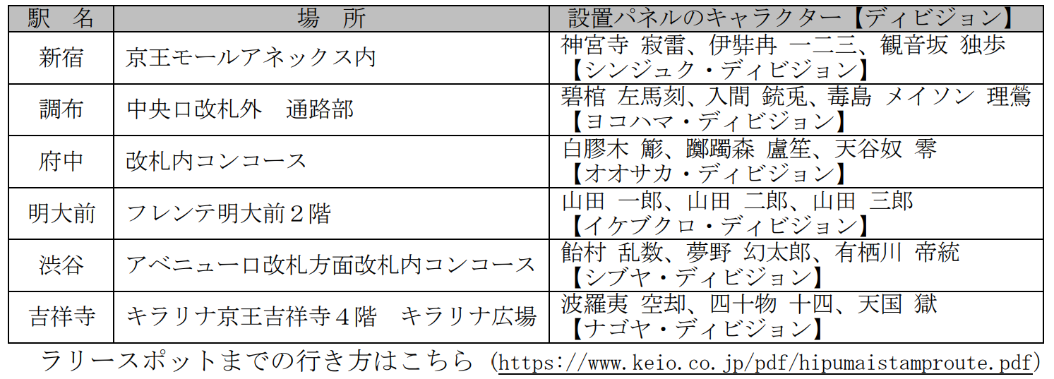 ラリースポットまでの行き方はこちら(https://www.keio.co.jp/pdf/hipumaistamproute.pdf)