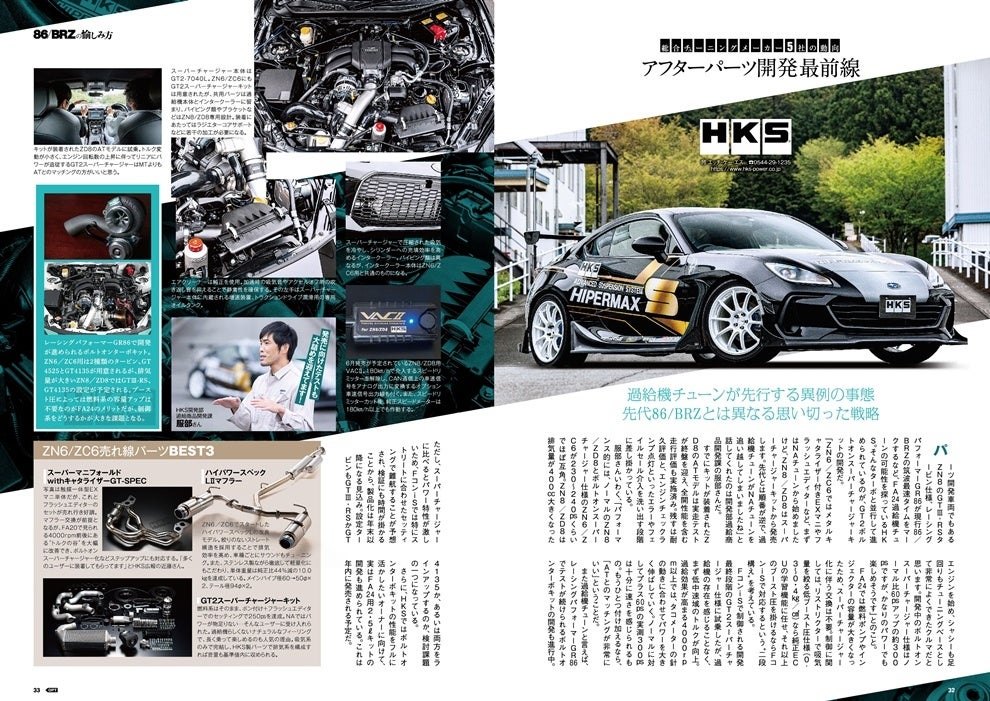 また、86/BRZとして記録を持っているフェニックスパワー最高速仕様、HKSテクニカルファクトリーとオートプロデュースボスのサーキット仕様を取材。最速マシンのメイキングに迫る。