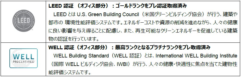 環境認証評価に積極的に取組んでいます。取得予定である主な環境認証を以下に記載します。