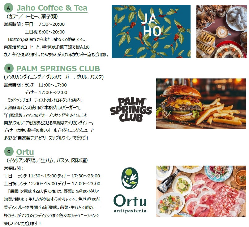 各施設の情報は下記、WEBサイトとSNSをご確認ください。今後、詳細な開業日や営業内容が確定次第、ニュースリリースや下記WEBサイト等にて情報発信をしてまいります。