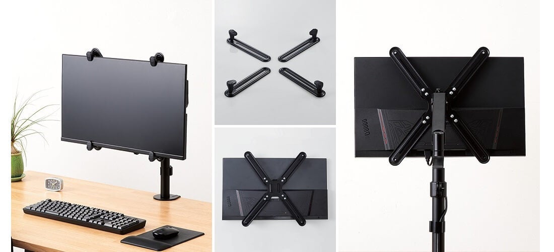 VESA穴がない13~27インチのモニターを、モニターアームに装着できる!様々な形状に対応するモニターマウントホルダーを新発売