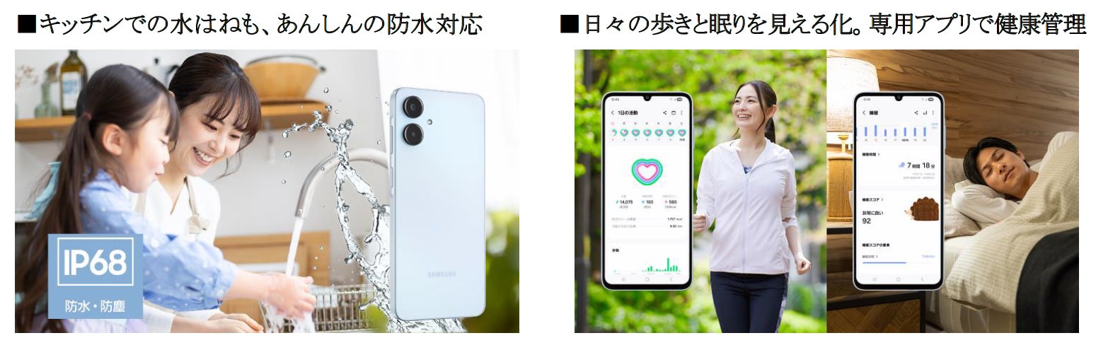 「Samsung Galaxy A25 5G」(SIMフリーモデル)の特長は、以下のとおりです。