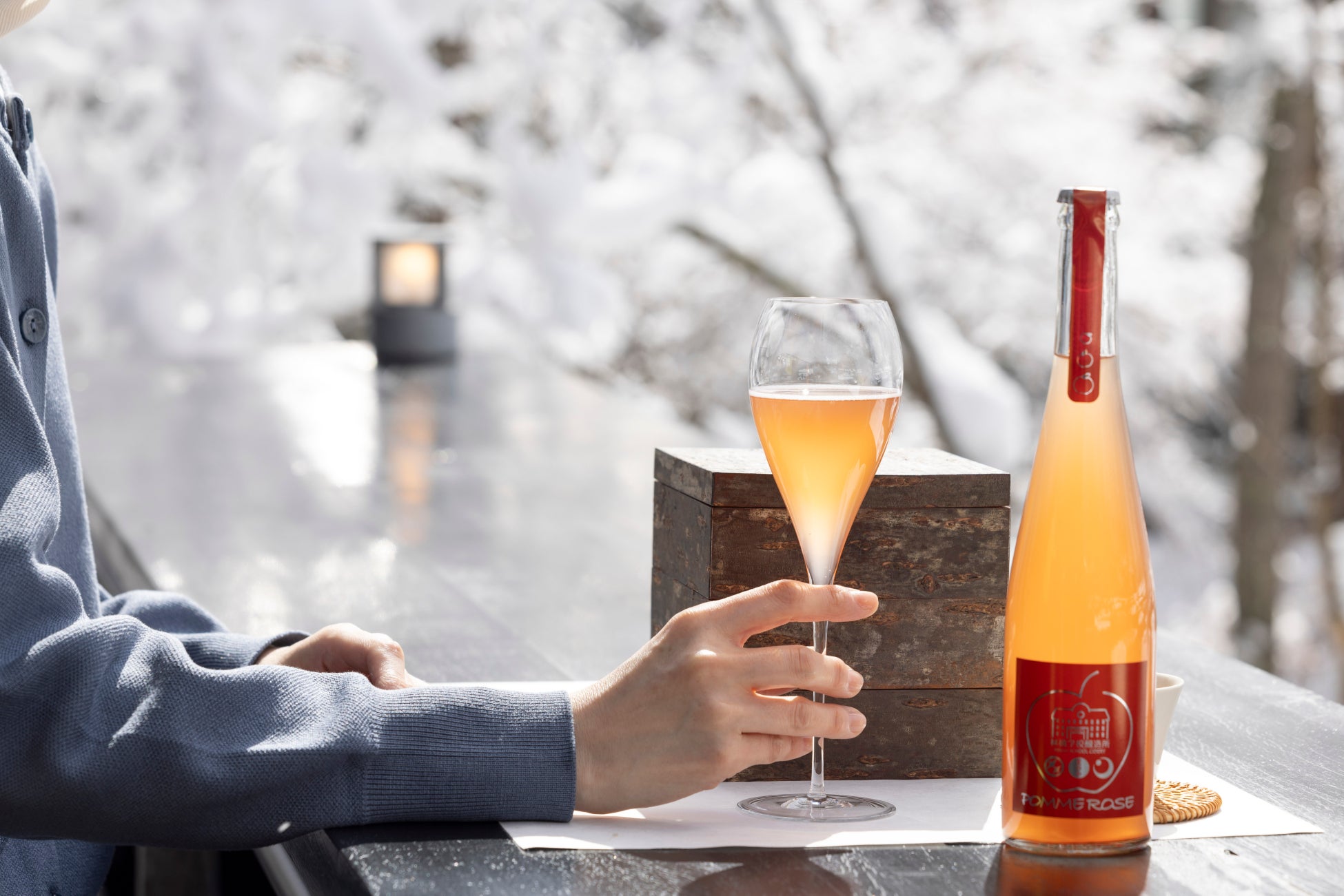 菓子や食事に合せて味わうドリンクの一つとして、このアフタヌーンティーのために信州のシードル専門醸造所の「林檎学校醸造所」と協力して限定醸造した、オリジナルのロゼシードル「プレミアムシードル POMME ROSE(ポム・ロゼ)」や、山桜の樹皮を使用した飲む伝統工芸とも呼ばれる「桜樺茶」を用意します。「プレミアムシードル POMME ROSE」は、希少な赤果肉りんごである信州生まれの炎舞とIHR17、英国生まれのメイポールの3種をブレンドして瓶内二次発酵で仕上げた甘酸っぱいロゼシードルです。爽やかな酸が特徴の味わいが、和洋の垣根のない棚田アフタヌーンティーの様々な品と調和します。また「桜樺茶」はお重の樺細工(かばざいく)の素材となる大山桜の樹皮を使用したブレンドティーです。優しい口当たりと爽やかな風味を感じるお茶で、棚田やアフタヌーンティーとの一体感をより引き立てます。