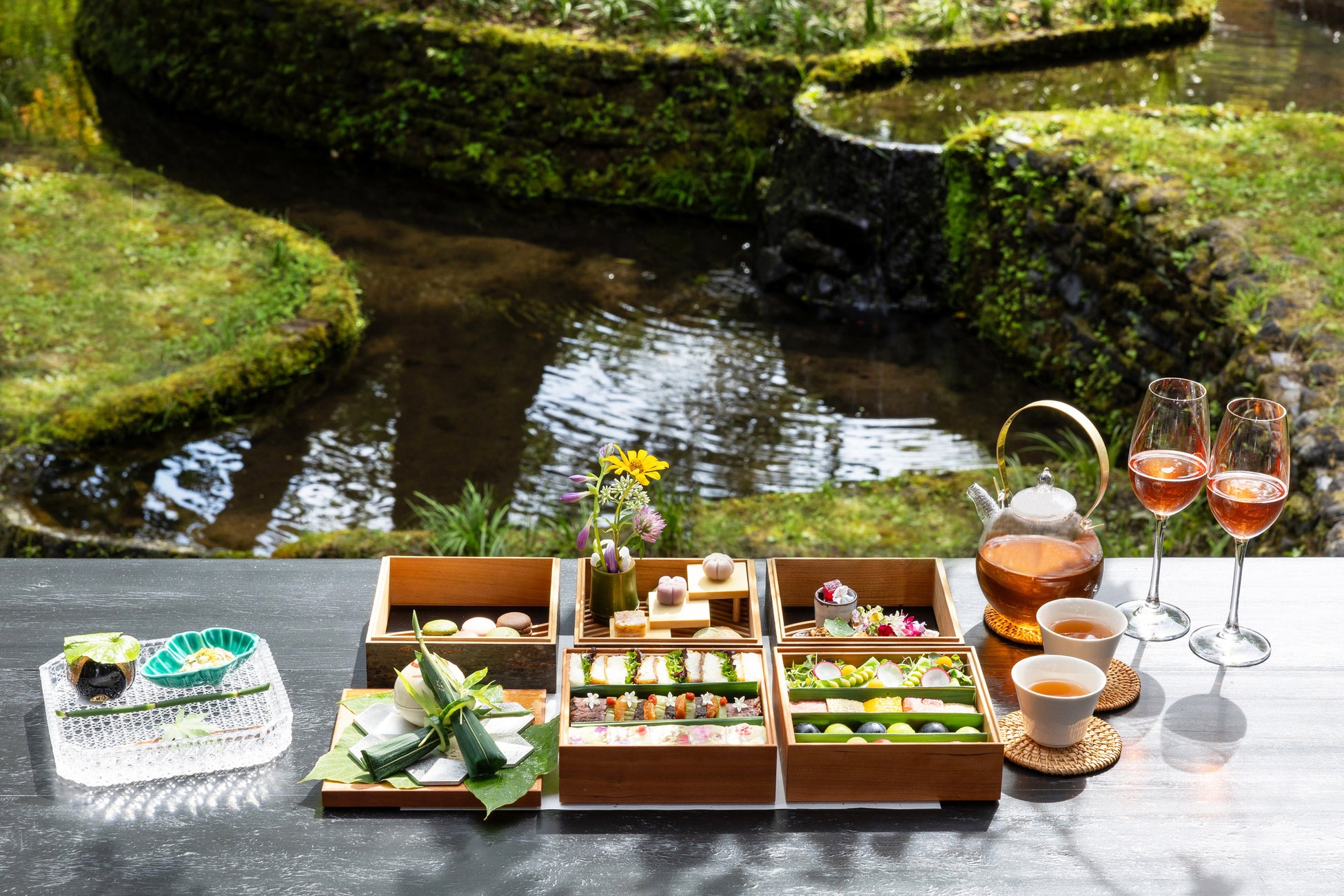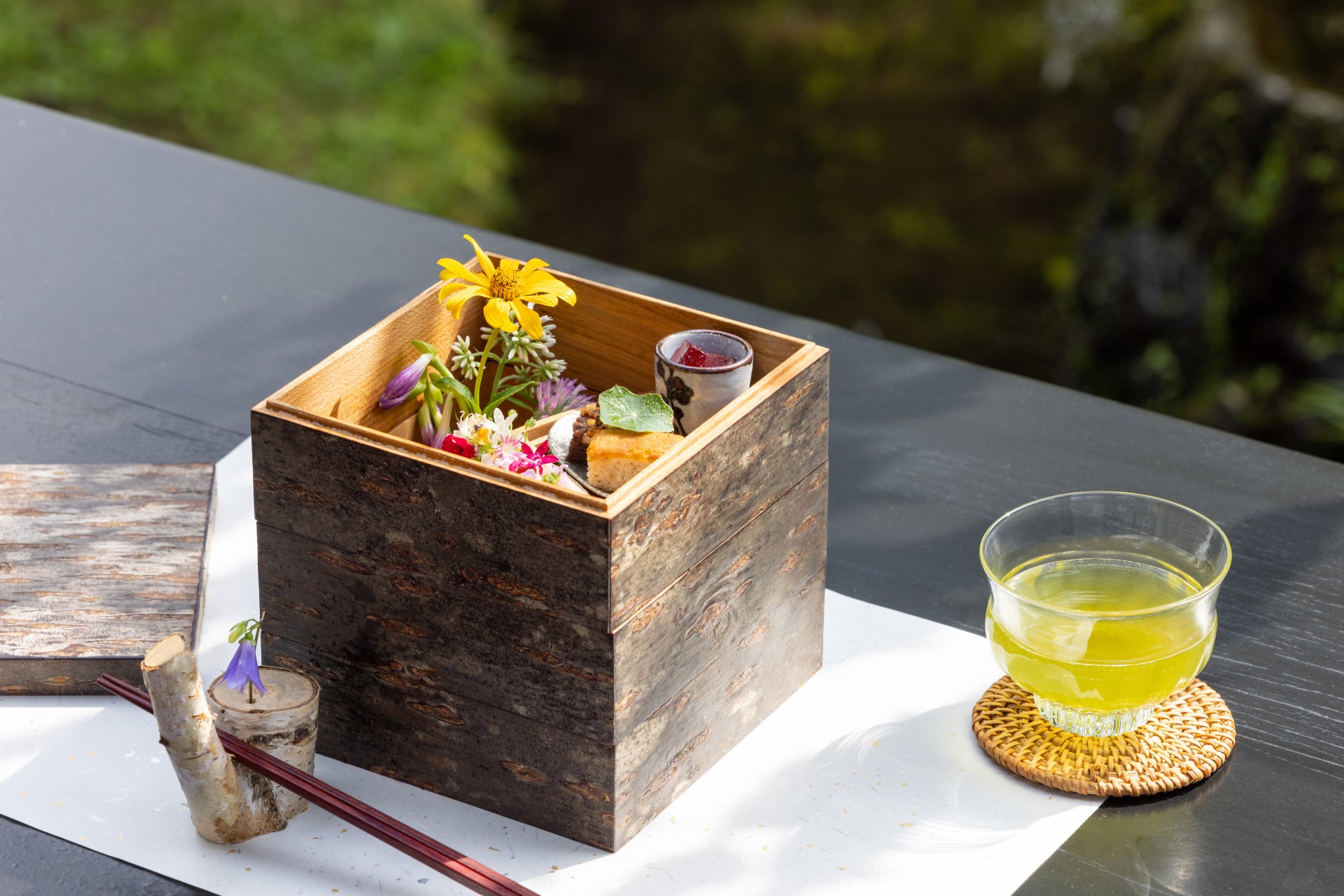 水音が響く棚田の特等席で、四季折々の恵みを盛り込んだ三段重でティータイムを