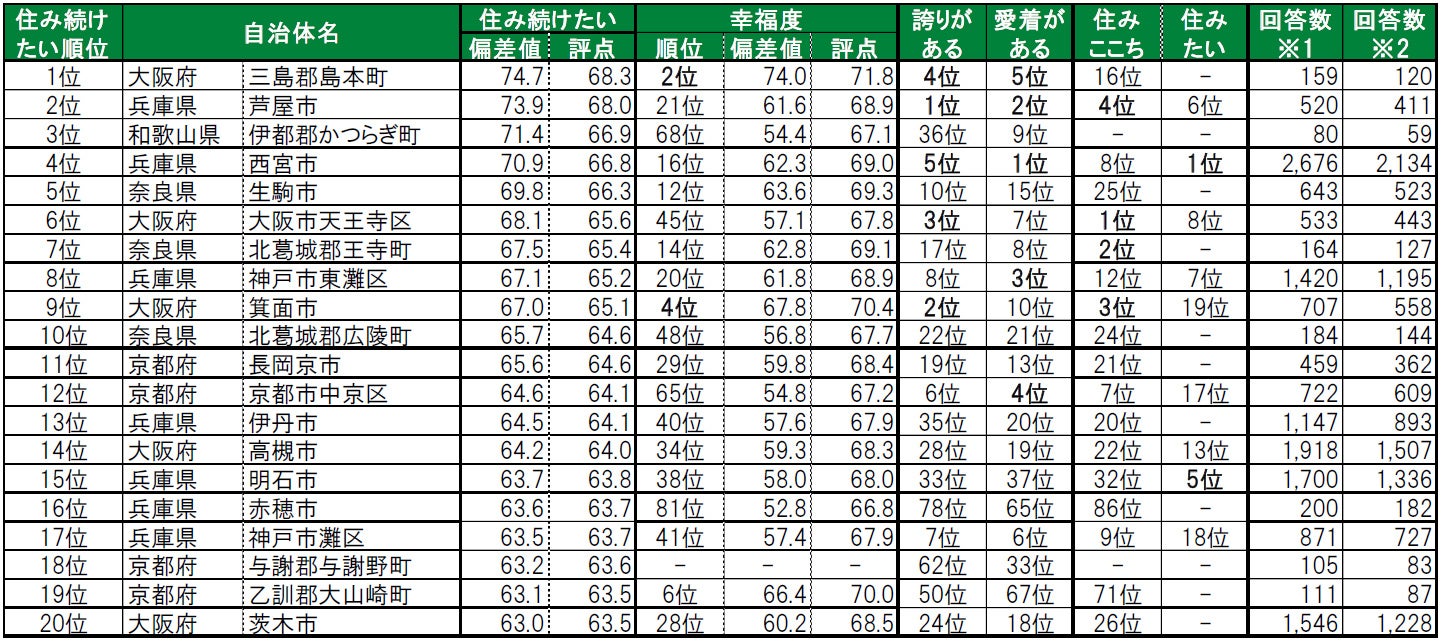 いい部屋ネット「街の幸福度 & 住み続けたい街ランキング2022<関西版>」(街の住みここちランキング特別集計)発表