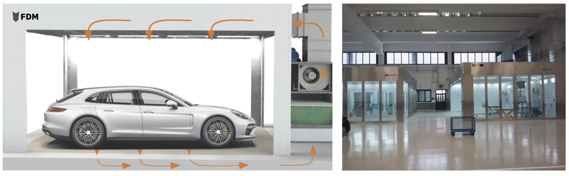 プレップステーションは、ノンスモーク・ノンダストな環境でサンディング作業や塗装準備を行うために研究・設計ています。オペレーターは、トータルエアリサイクルと吸引を選択することができます。