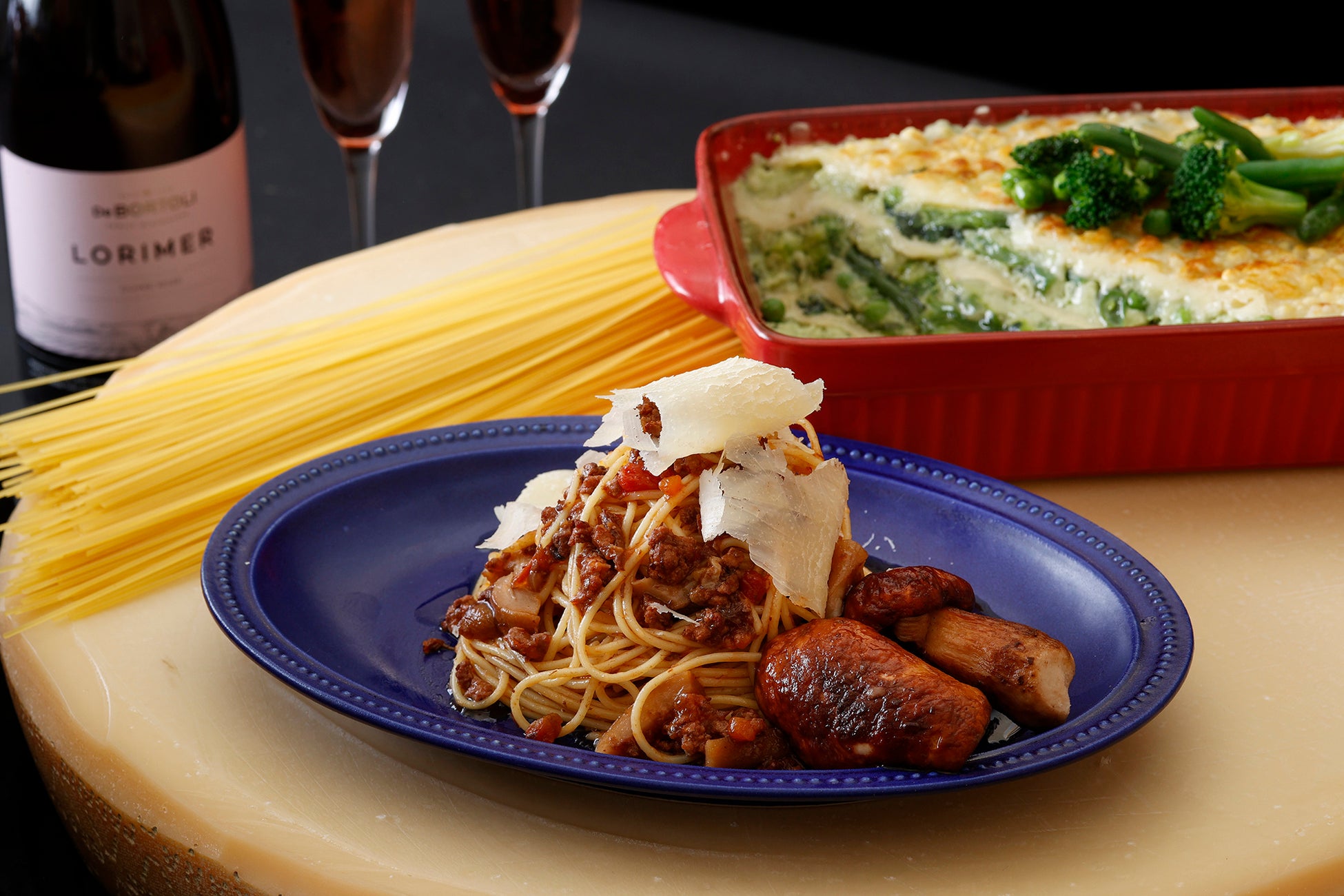 イタリアンダイニング ジリオンからは、緑鮮やかなラザーニャのほか、ランチ限定でポルチーニ茸を使用したボロネーゼソースのパスタをチーズケースで和えて提供いたします。