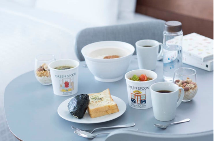 今回のリニューアルと併せ、朝食サービスとして新たに「ステイモーニング+(プラス)」の提供を開始いたします。レンジで温めるだけの「おてがるセット」、お部屋で炊きたてのごはんが食べられる「どんぶりセット」の 2 種種類をご用意し、お好みでお選びいただけます。フードロス削減を目指し、野菜たっぷり「GREEN SPOON」製の冷凍スープや和惣菜など、ヘルシーで味わい深いメニューを多数取り揃えています。