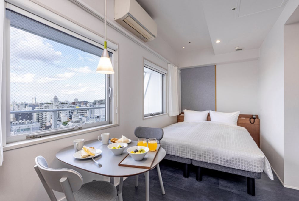 シンプルで明るく清潔感溢れる客室では、室内のデスクをダイニングテーブルに替え、イスと共に自由に動かせるのでお好みの配置にカスタマイズが可能。また東急ステイの朝食「ステイモーニング+(プラス)」もご利用可能で、旅先でも自宅で過ごすように、温かいお食事をお好きな時間にお召し上がりいただけるようになりました。