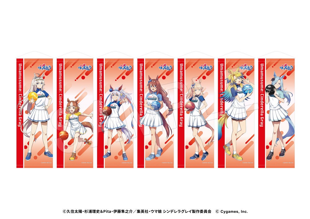 ボウリングを楽しむウマ娘たち7人の新規描き下ろしイラストを使用した「アクリルフィギュアスタンド」や「グリッターアクリルアートパネル」のほか、カプセルトイの「ましかく缶バッジ」や、クレーンゲーム景品の「BIGアクリルスタンド」など、コラボならではの新作アイテムが登場!