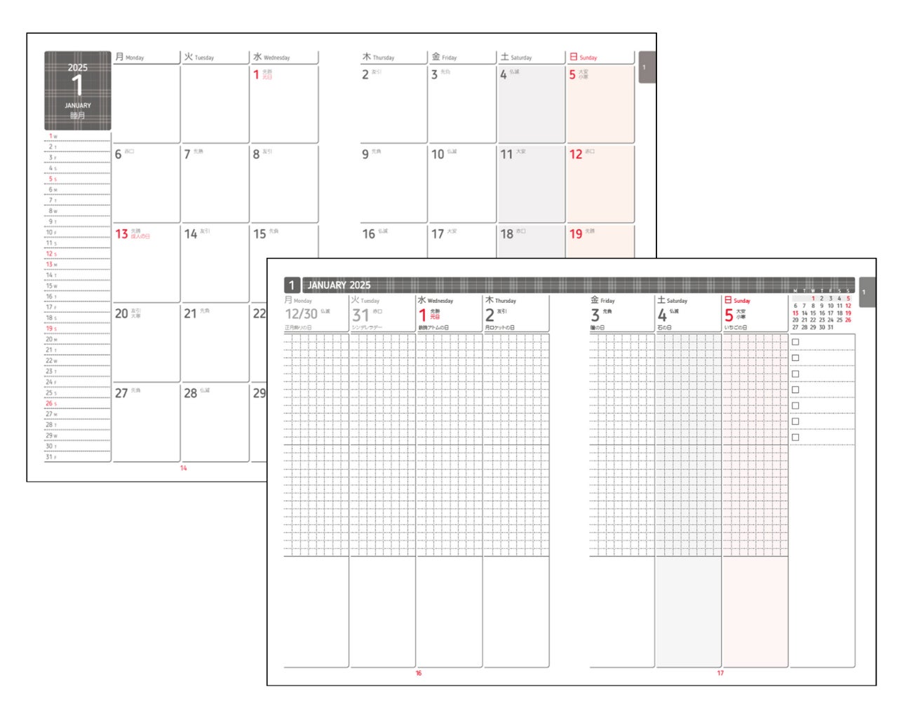 カレンダー部分は方眼、記入欄もたっぷりあって書き込みやすさ抜群!